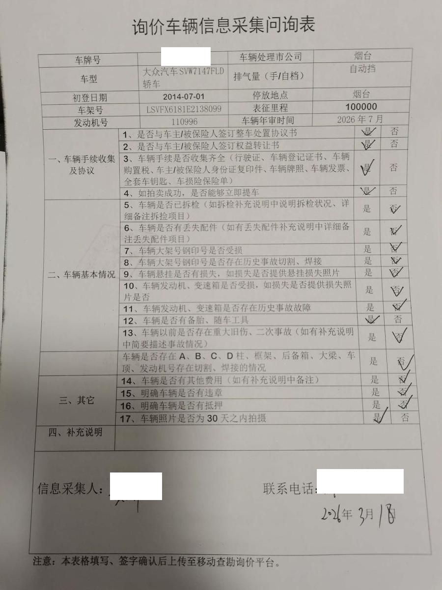 车架号是否受损 使用性质 非营运