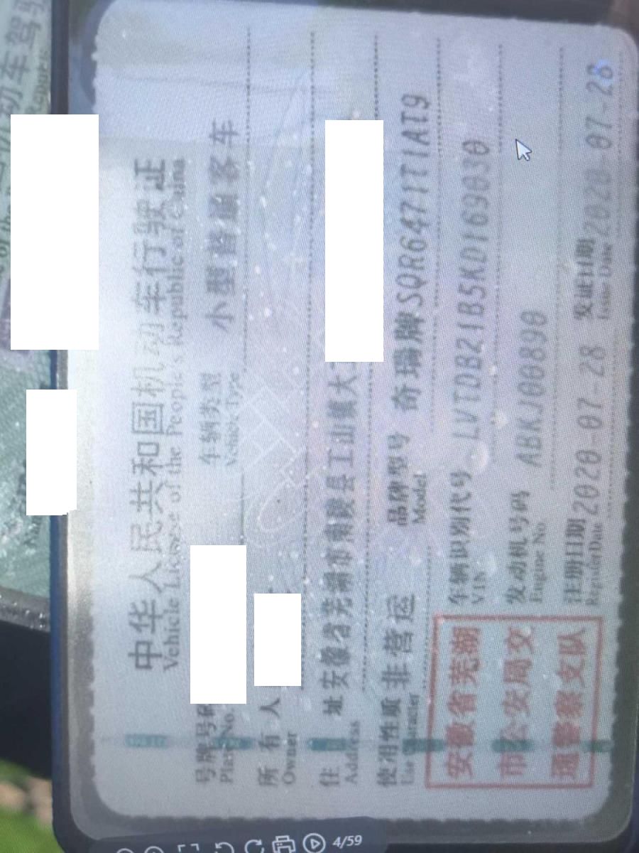 车牌号 皖****** 品牌 奇瑞