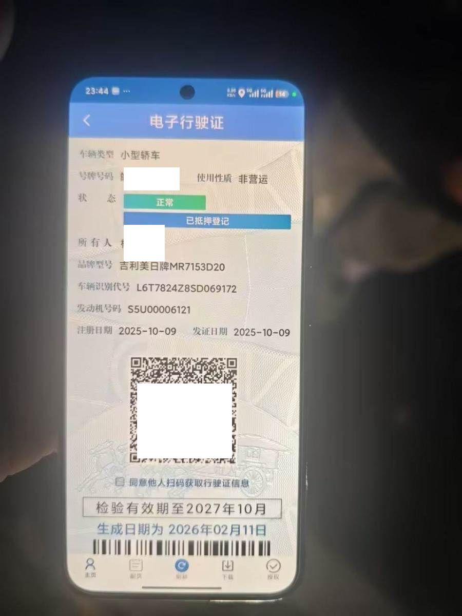 初次登记日期 2025-10-09 车辆名称 吉利汽车