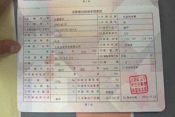 车牌号 鲁****** 品牌 大众