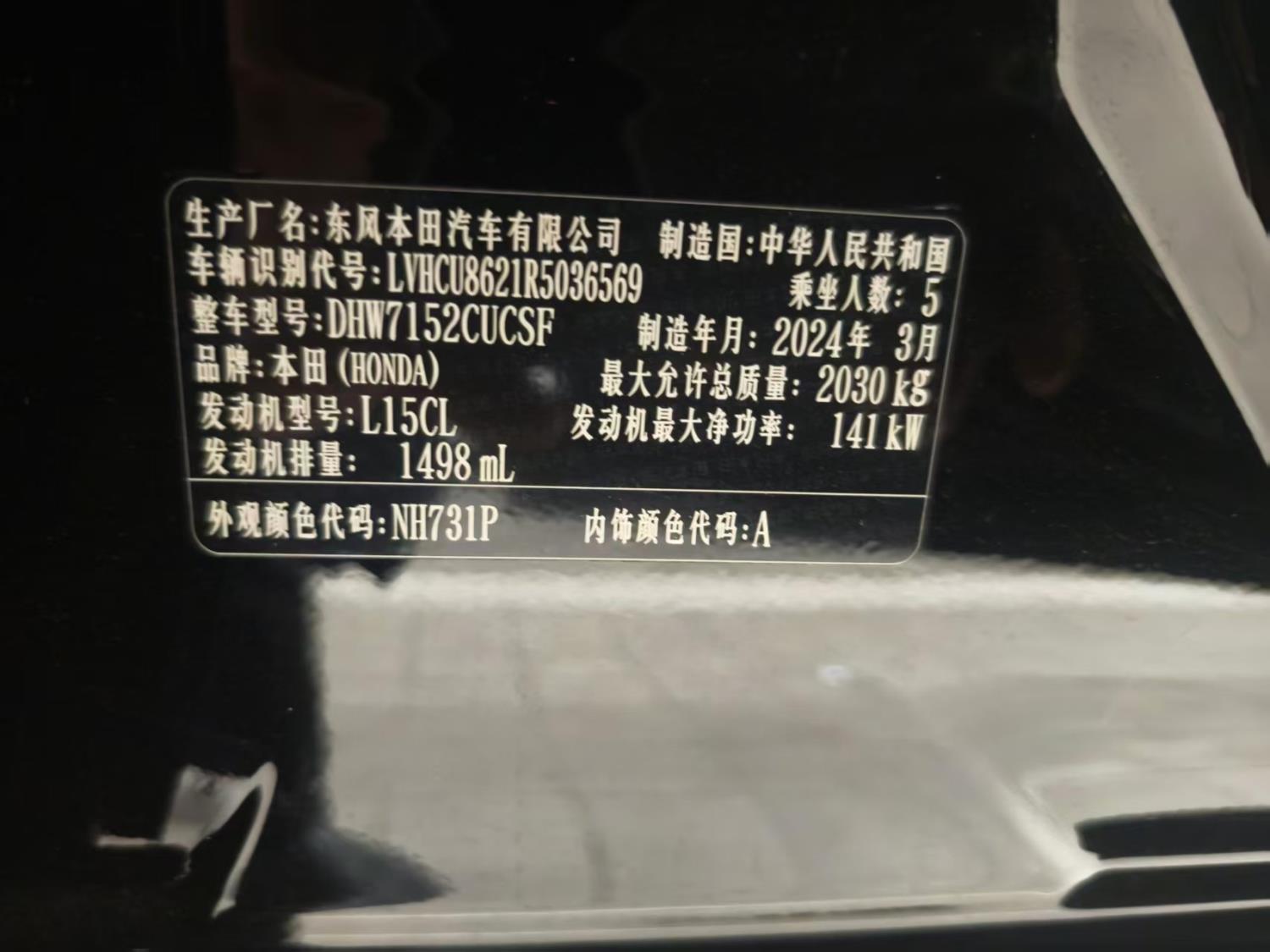 初次登记日期 2024-04-09 车辆名称 本田 英仕派