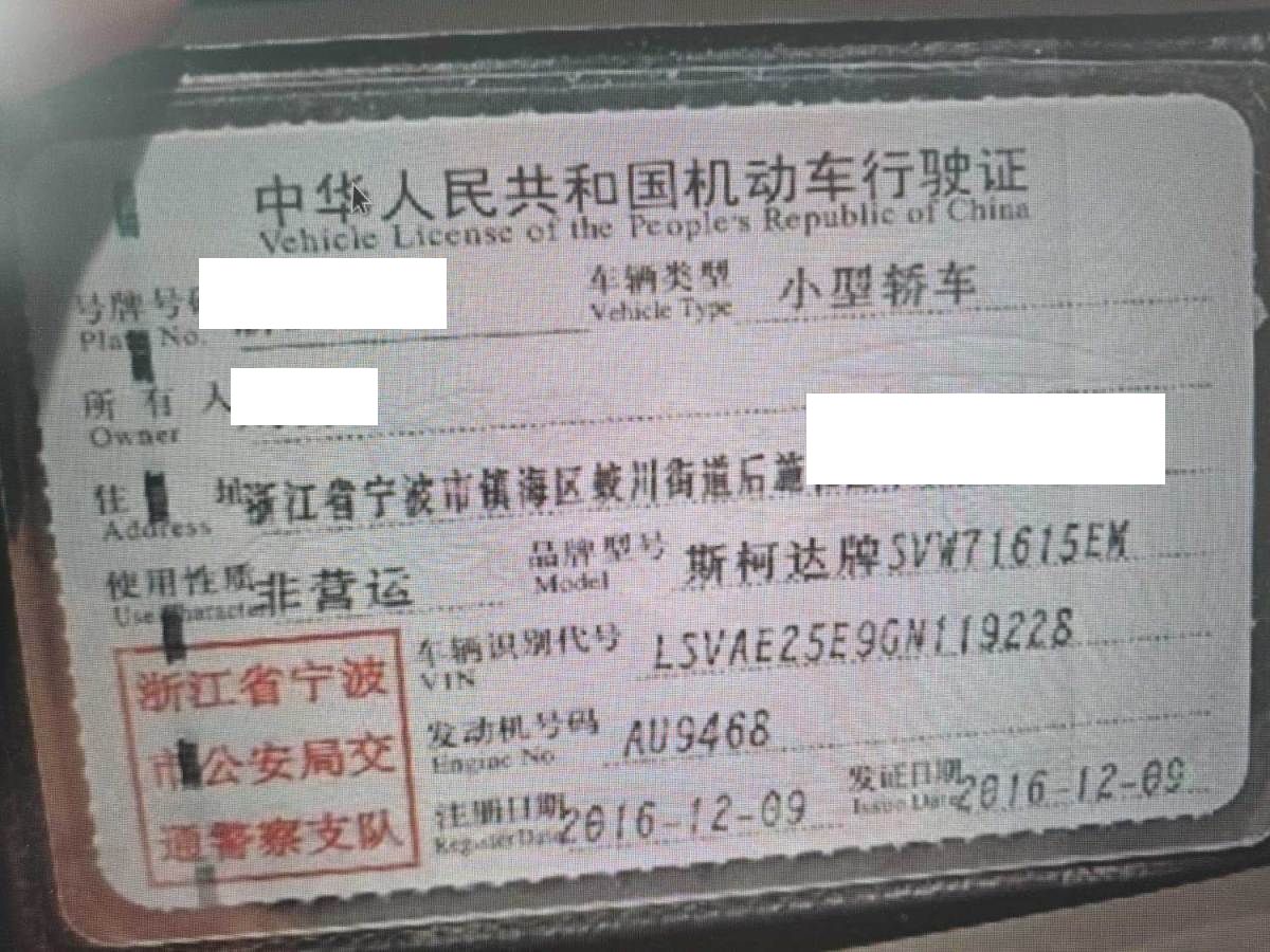 车牌号 浙****** 品牌 斯柯达