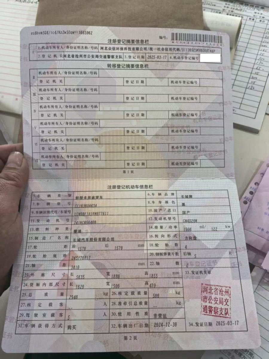 初次登记日期 2025-03-17 车辆名称 长城 金刚炮