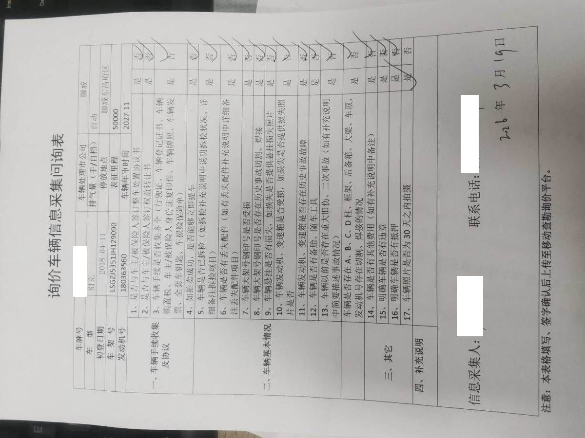车架号是否受损 未知 使用性质 非营运