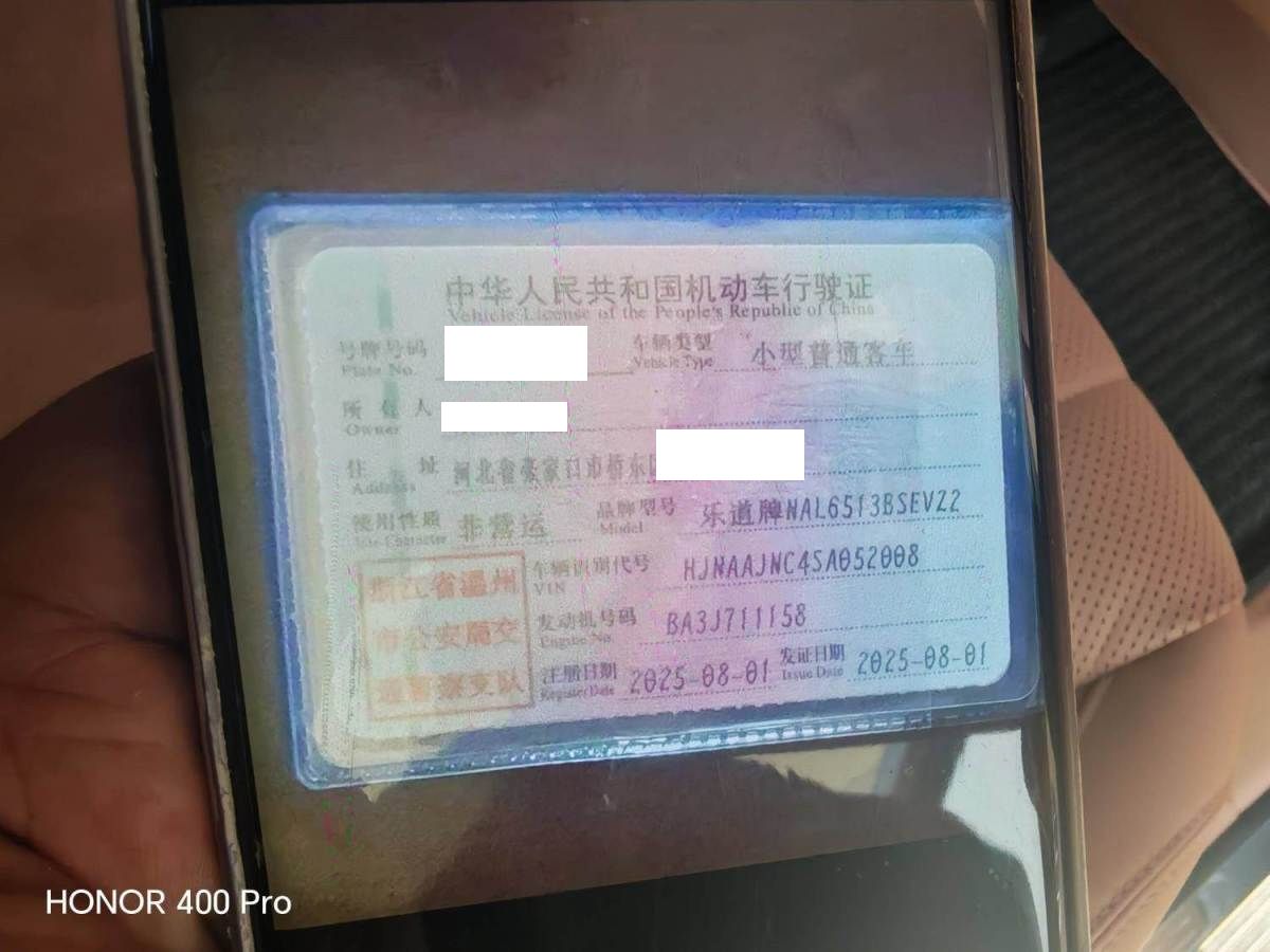 初次登记日期 2025-08-01 车辆名称 乐道牌