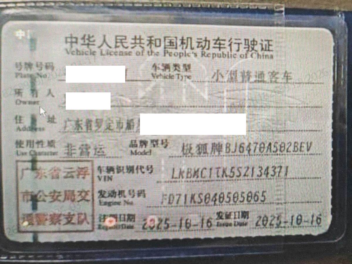 初次登记日期 2025-10-16 车辆名称 ARCFOX极狐 极狐 阿尔法