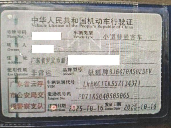 车辆归属地 广东省云浮 车辆停放仓库 广东省云浮市云浮市