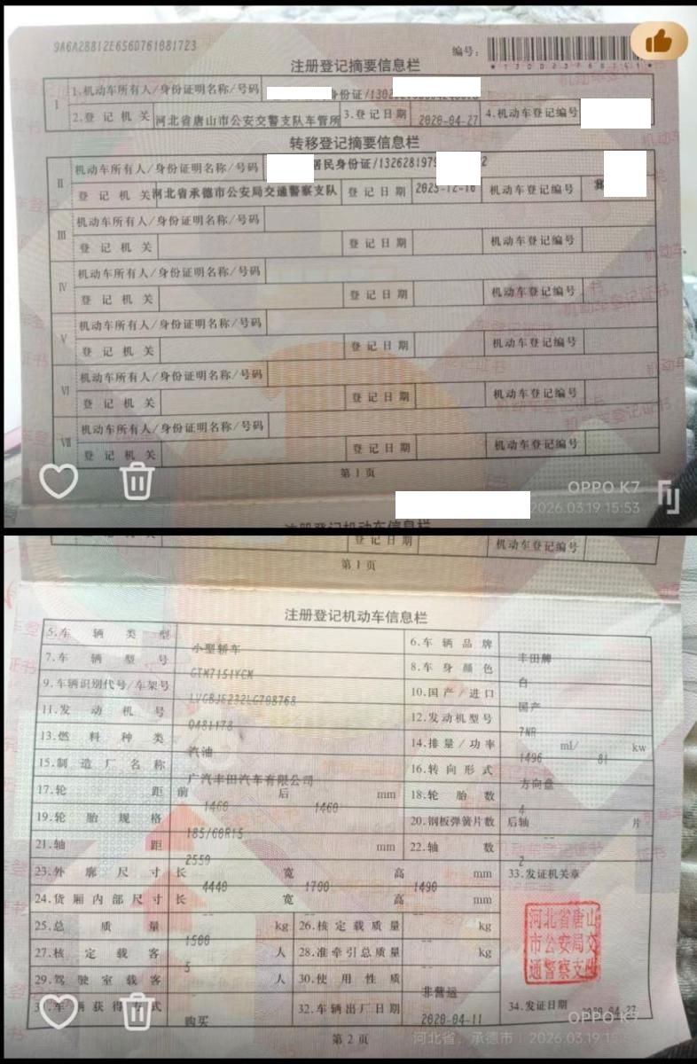 车牌号 冀****** 品牌 丰田