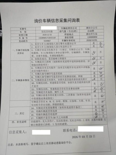 非新能源车,无人员伤亡,无法院查封,无社会纠纷。发动机破裂。 5年以上车辆报价后不得以二次事故为由提出议价或退车弃标。