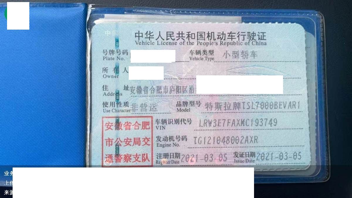 车牌号 皖****** 品牌 特斯拉