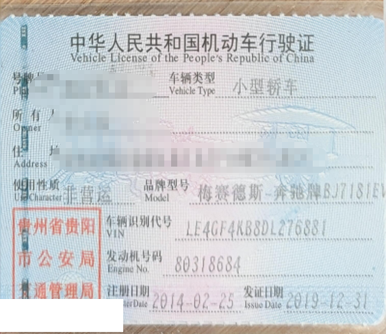 车牌号 贵****** 品牌 奔驰