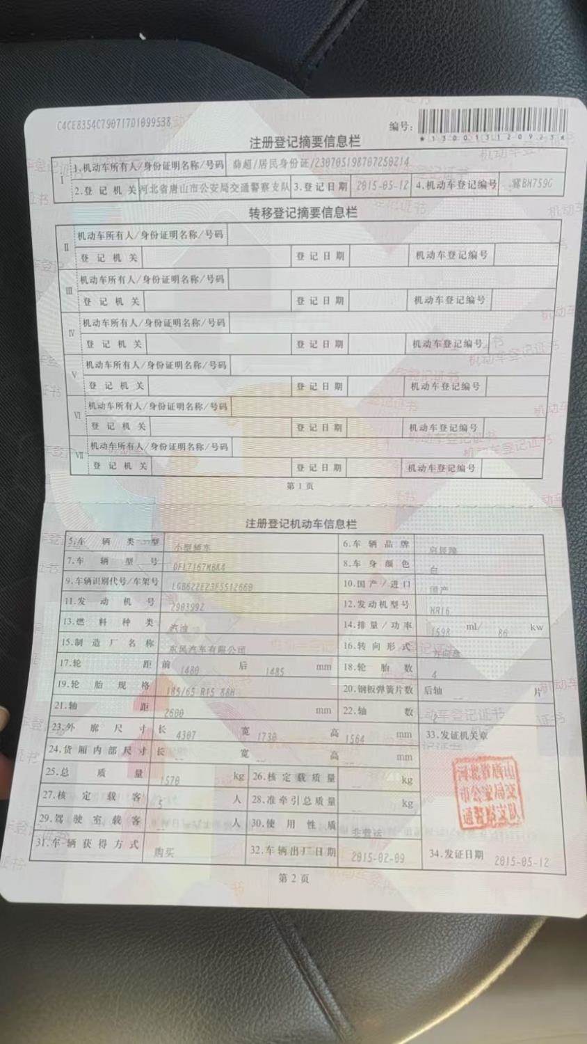 车辆归属地 河北省唐山市 车辆停放仓库 河北省迁安市迁安市