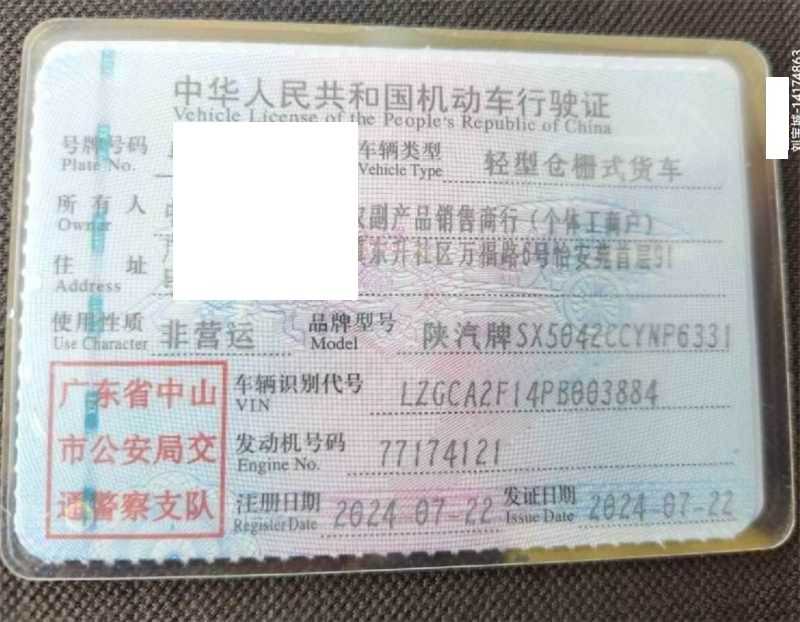 初次登记日期 2024-07-22 车辆名称 陕汽牌