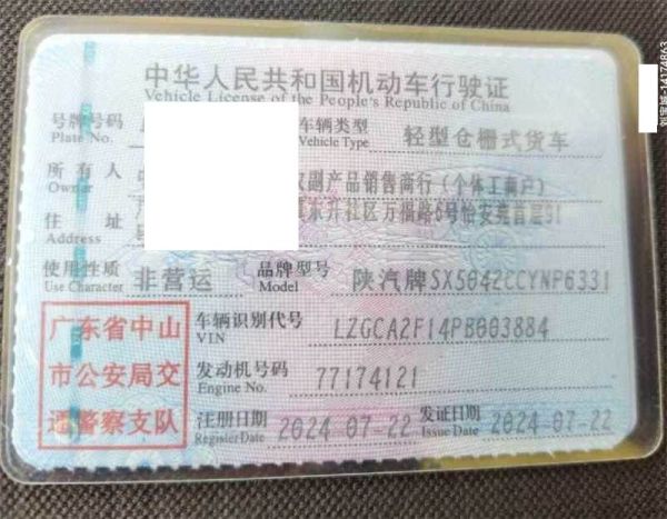 车辆归属地 广东省中山市 车辆停放仓库 广东省清远市清远市