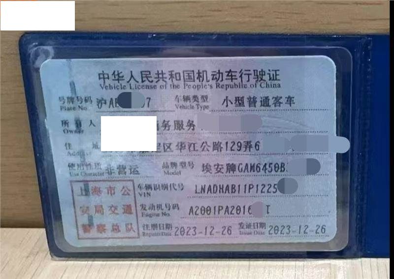初次登记日期 2023-12-26 车辆名称 埃安 AION