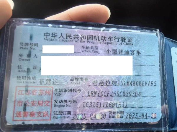 初次登记日期 2025-04-30 车辆名称 特斯拉 Model