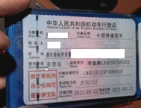 初次登记日期 2023-08-25 车辆名称 理想汽车 理想