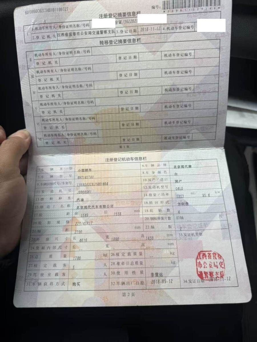 初次登记日期 2018-11-12 车辆名称 现代 领动