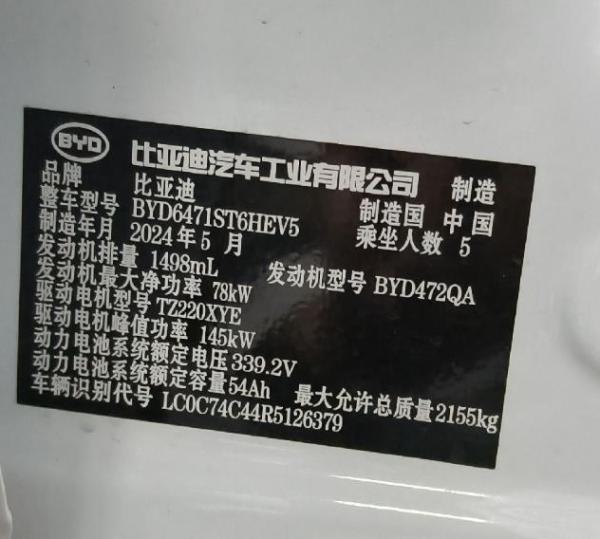 初次登记日期 2024-09-25 车辆名称 比亚迪 宋Pro