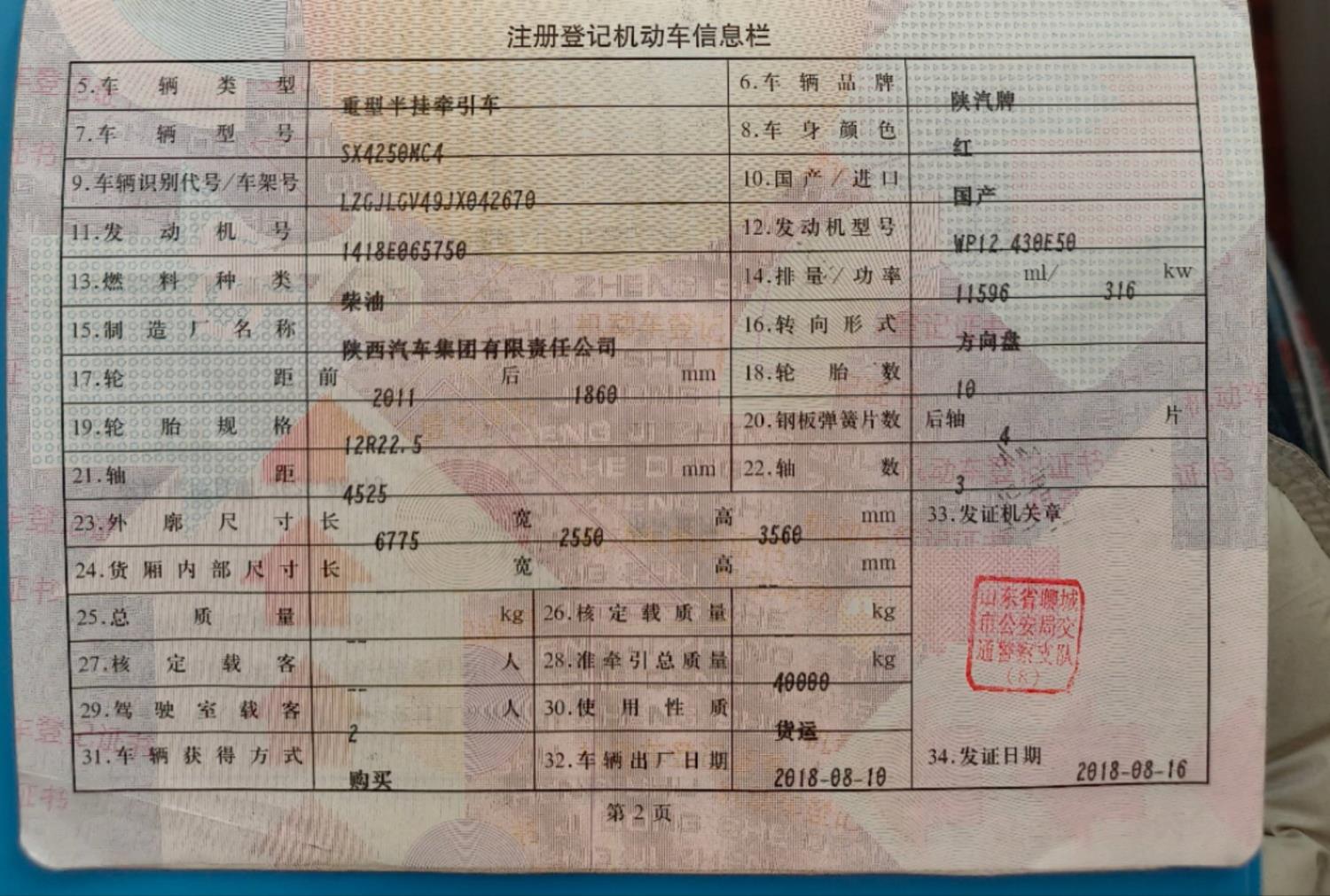 初次登记日期 2018-08-16 车辆名称 青岛解放 悍V