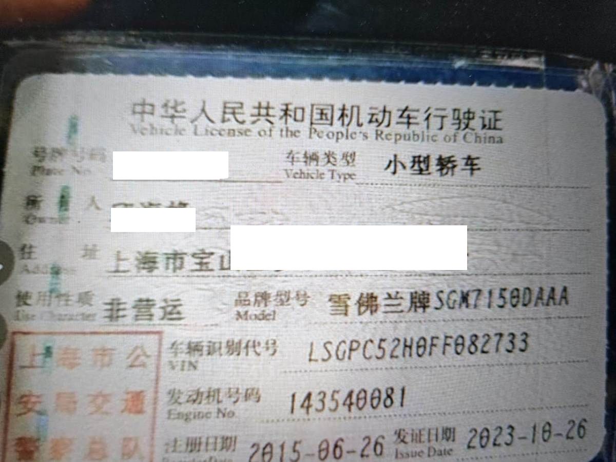 初次登记日期 2015-06-26 车辆名称 雪佛兰 科鲁兹