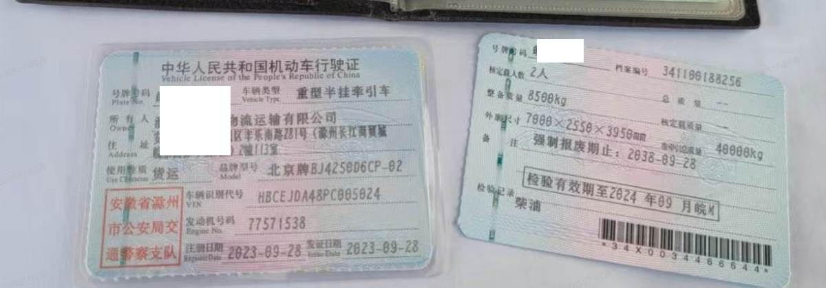 车辆归属地 安徽省滁州市 车辆停放仓库 安徽省六安市金安区