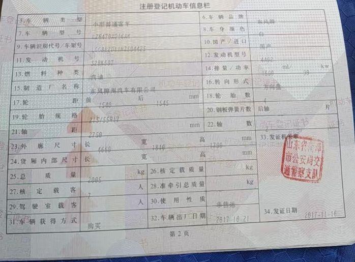 车牌号 鲁****** 品牌 东风风行