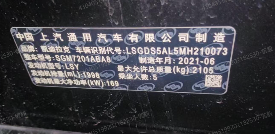 初次登记日期 2021-06-29 车辆名称 凯迪拉克CT5