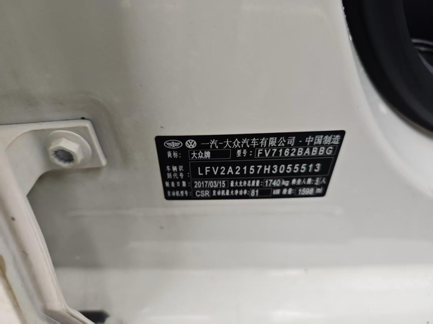 初次登记日期 2017-08-17 车辆名称 大众 宝来