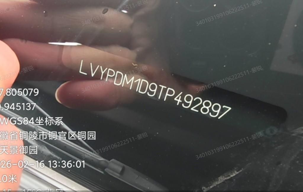 底盘号码 LVYPDM1D9TP492897 变速箱类型 手自一体