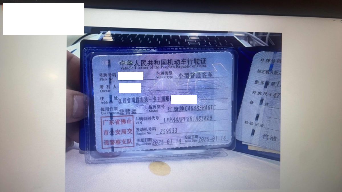 车牌号 粤****** 品牌 红旗