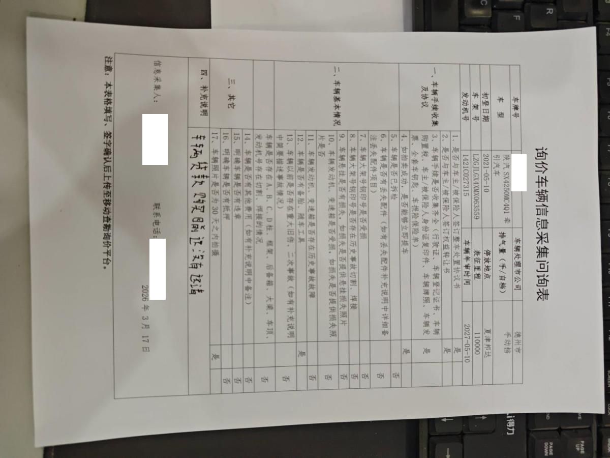 车架号是否受损 未知 使用性质 货运