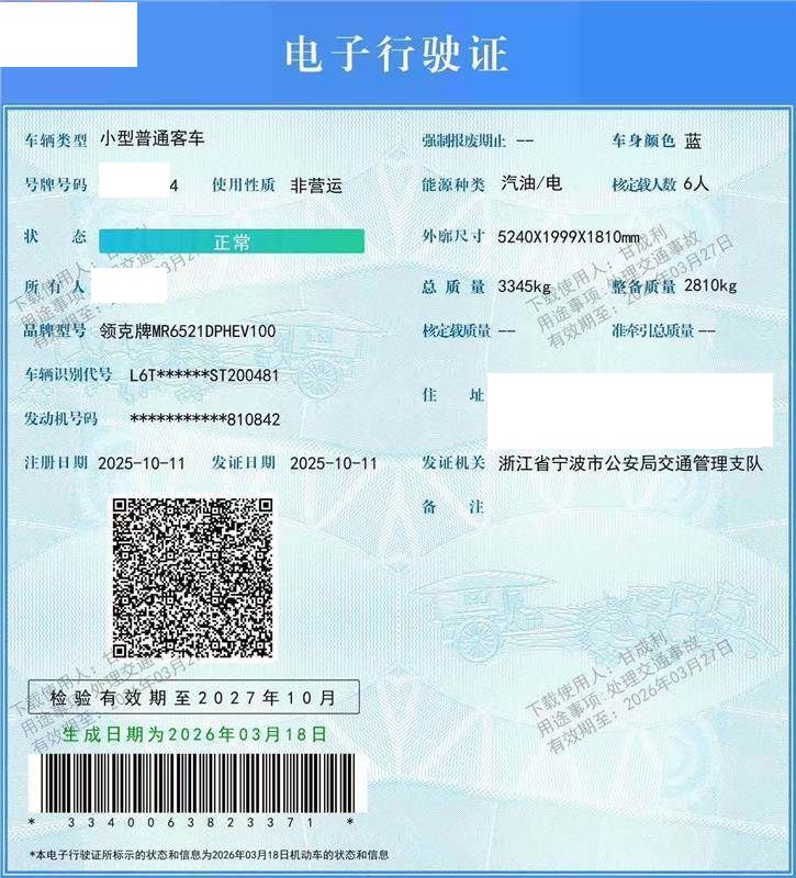 初次登记日期 2025-09-29 车辆名称 领克牌