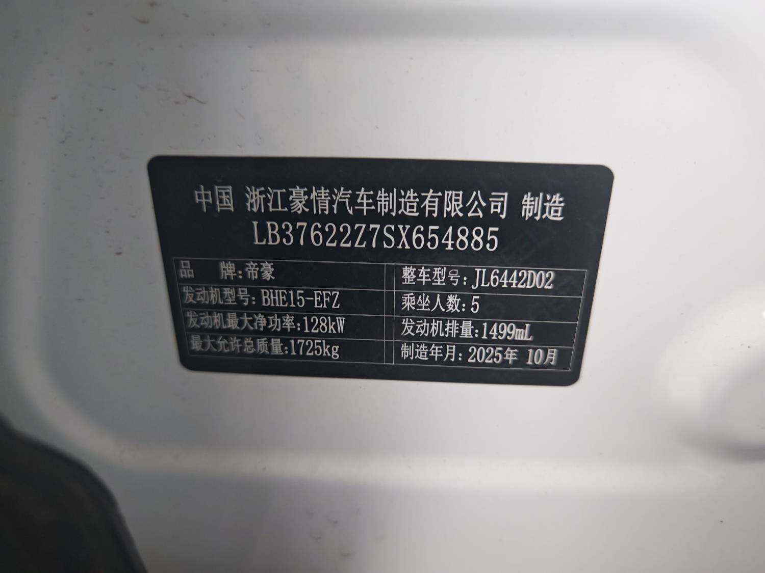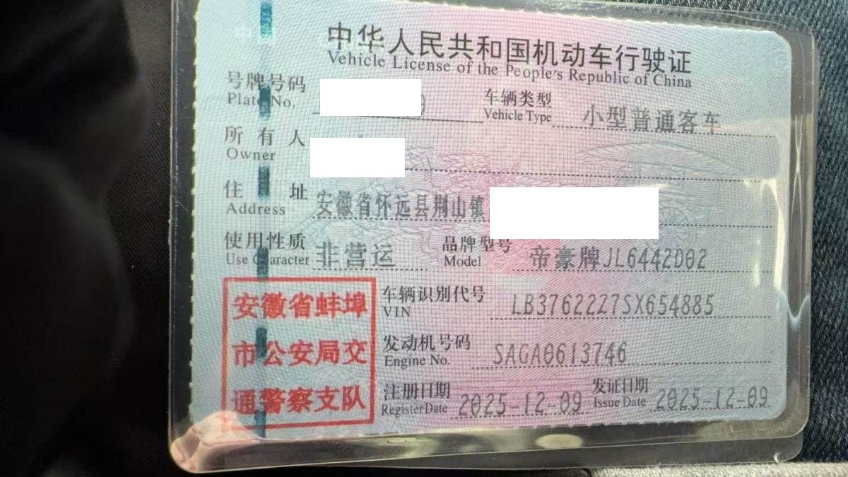 初次登记日期 2025-12-09 车辆名称 吉利汽车 缤越