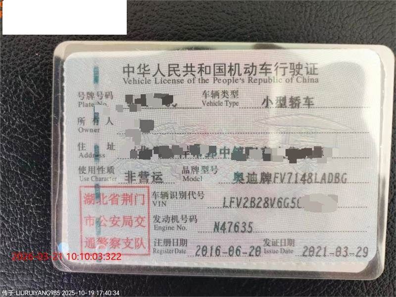 车牌号 鄂****** 品牌 奥迪