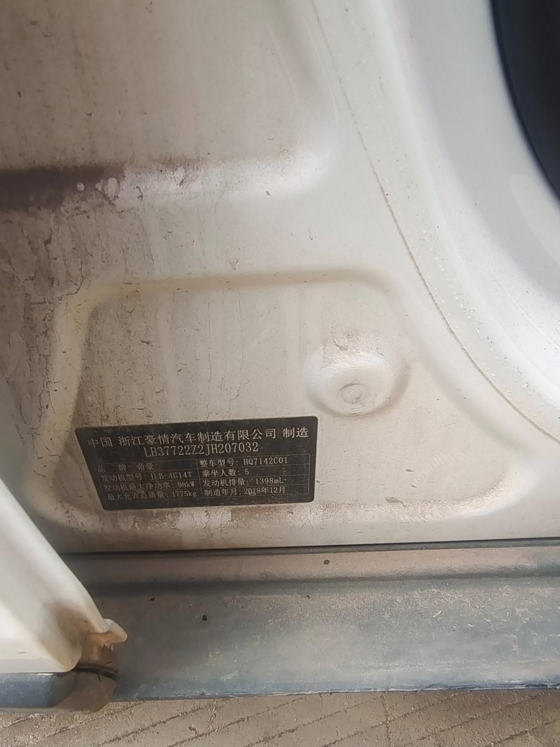 初次登记日期 2019-08-21 车辆名称 吉利汽车 帝豪GS