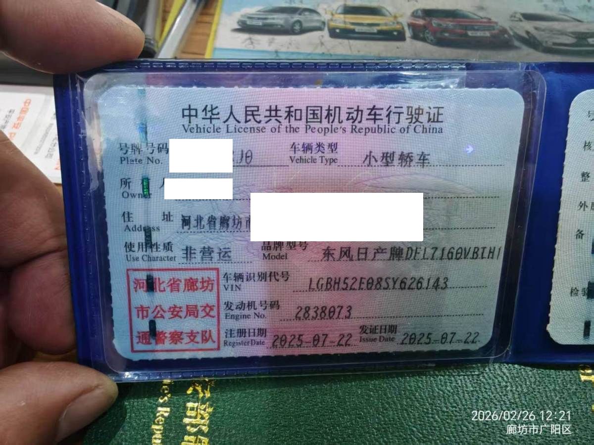 初次登记日期 2025-07-22 车辆名称 日产 轩逸