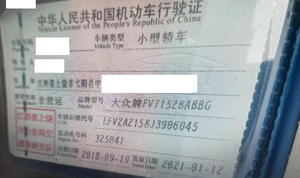 车牌号 赣****** 品牌 大众