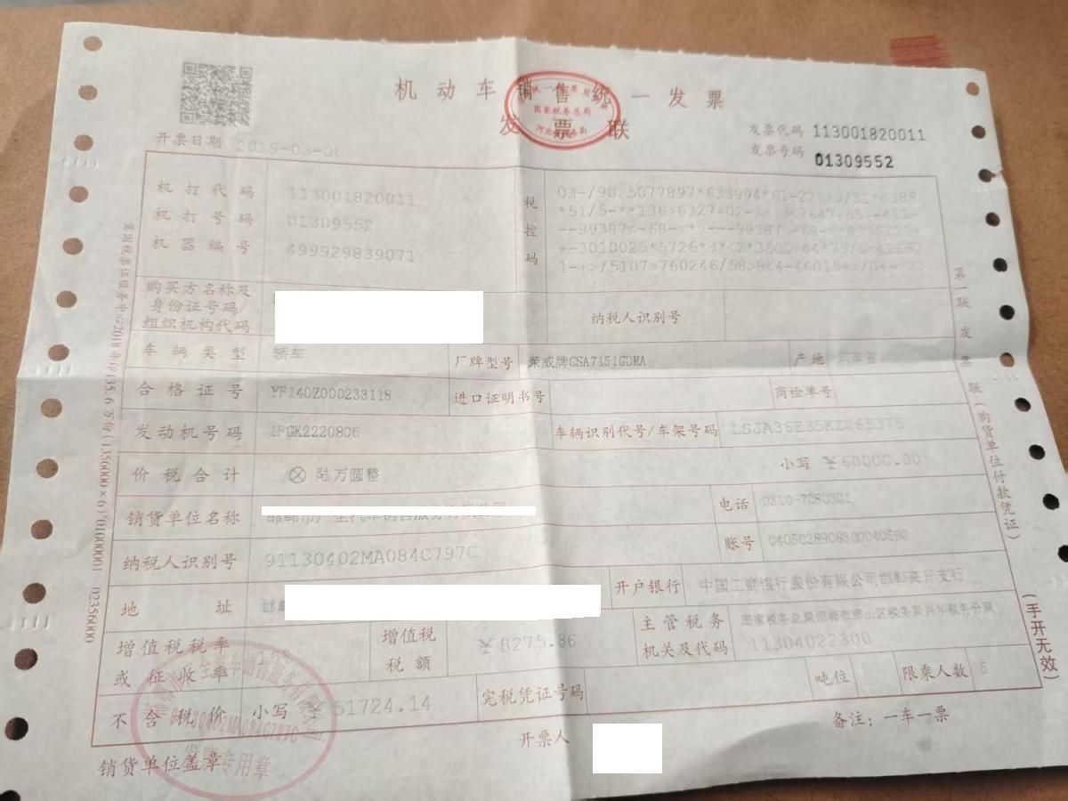 车牌号 冀****** 品牌 荣威