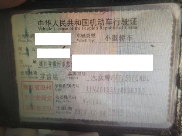 车辆归属地 浙江省温州市 车辆停放仓库 浙江省温州市温州市