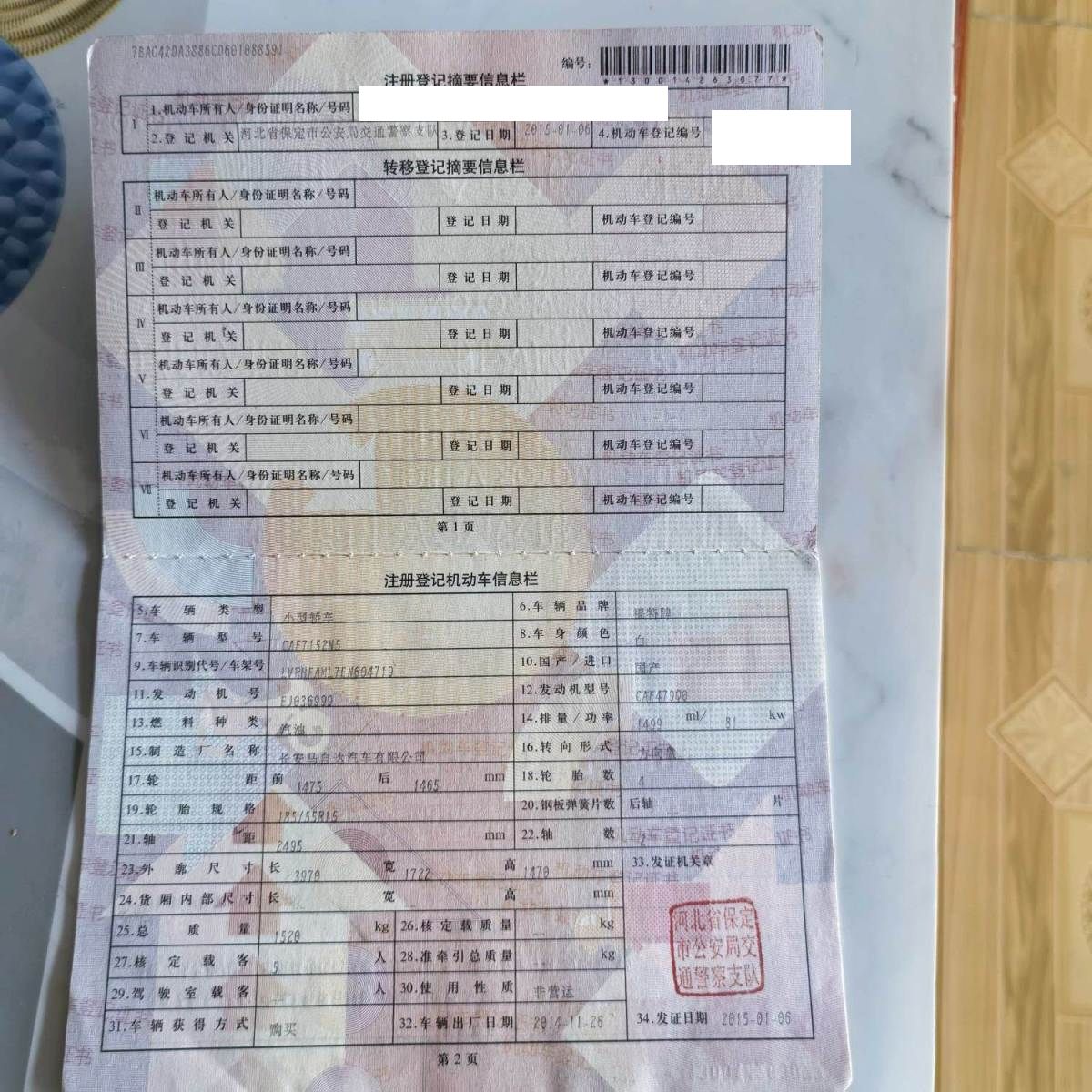 车辆归属地 河北省保定市 车辆停放仓库 河北省保定市保定市