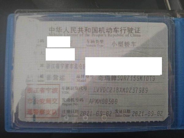车牌号 浙****** 品牌 奇瑞
