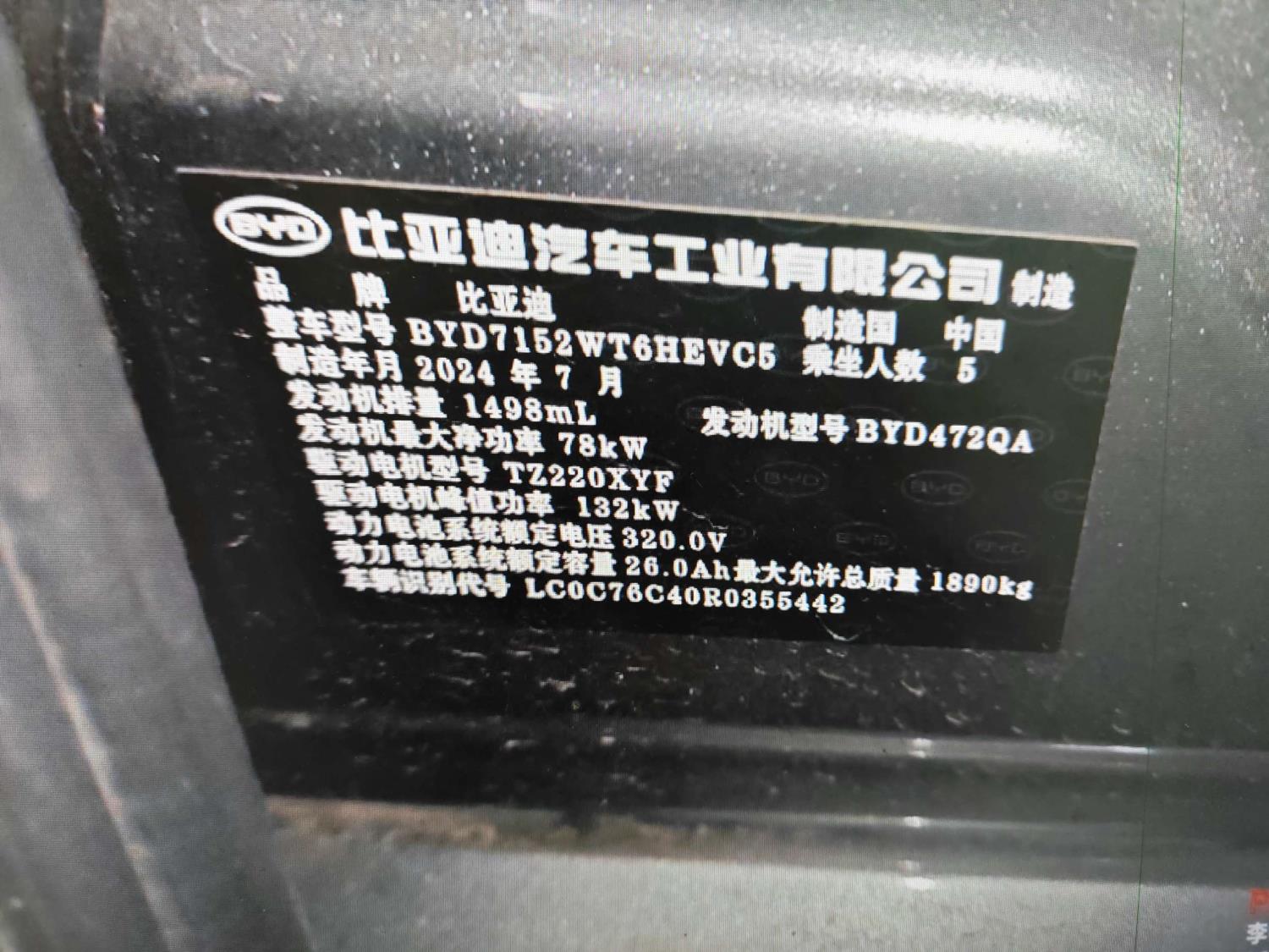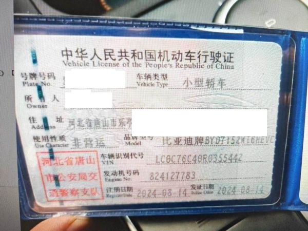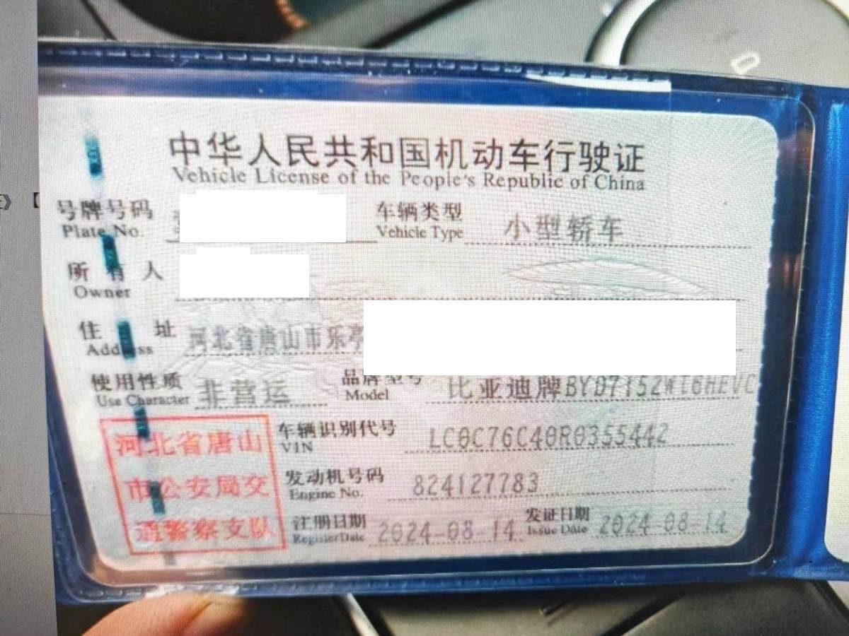 初次登记日期 2024-08-14 车辆名称 比亚迪