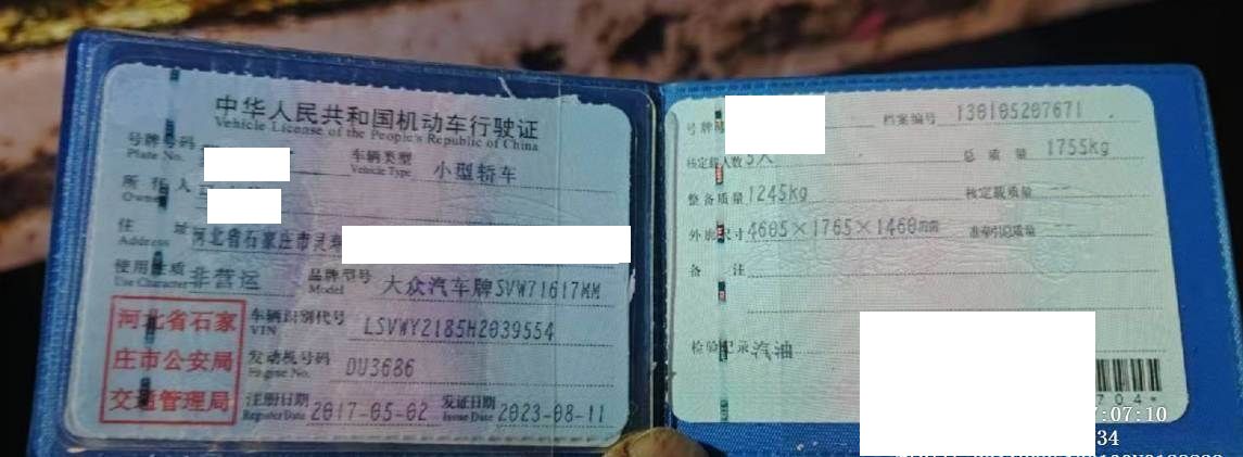 车辆归属地 河北省石家庄市 车辆停放仓库 河北省石家庄市石家庄市
