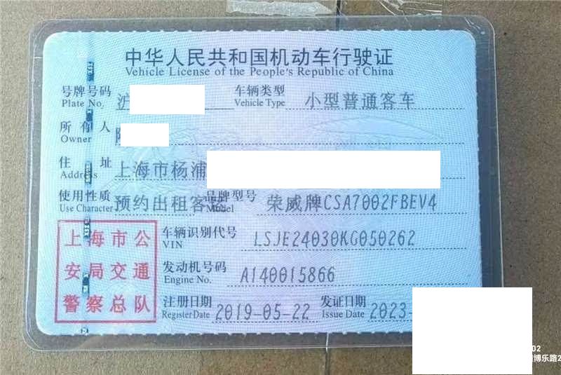初次登记日期 2019-05-22 车辆名称 荣威牌