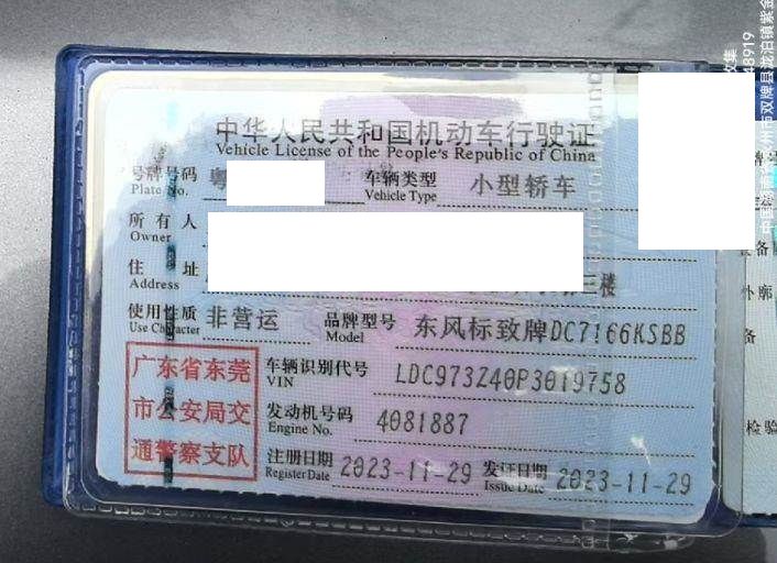 车辆归属地 广东省东莞市 车辆停放仓库 广东省东莞市东莞市
