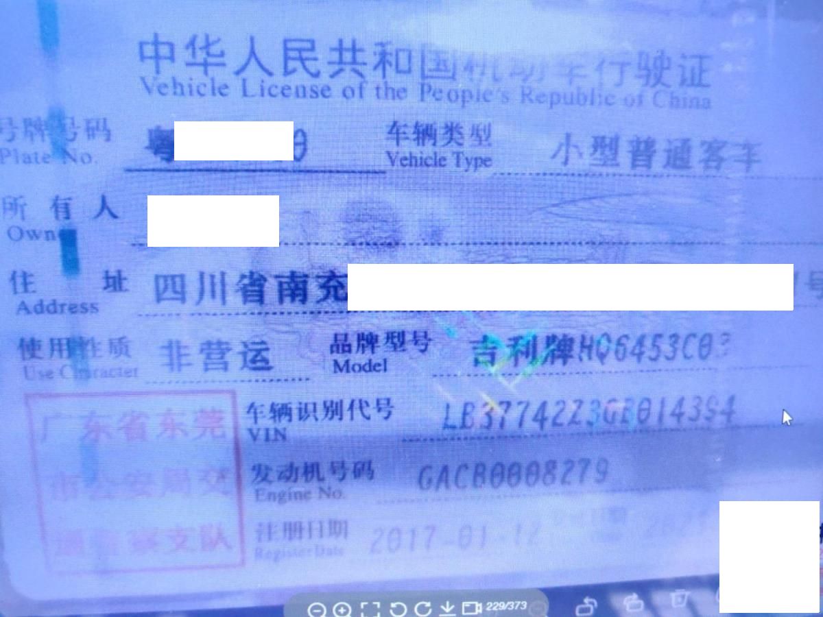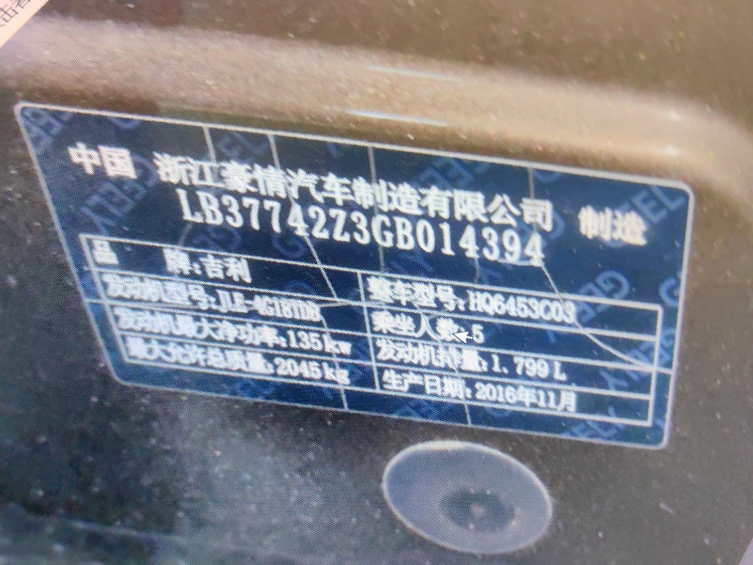 初次登记日期 2017-01-12 车辆名称 吉利汽车