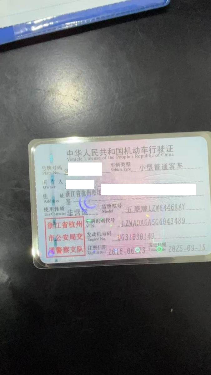 车牌号 浙****** 品牌 五菱