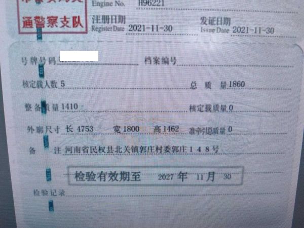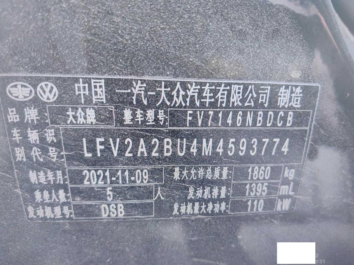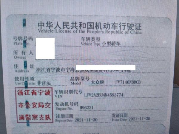 初次登记日期 2021-11-30 车辆名称 大众 速腾