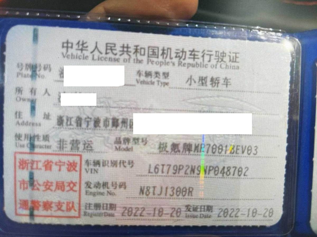 初次登记日期 2022-10-20 车辆名称 极氪牌